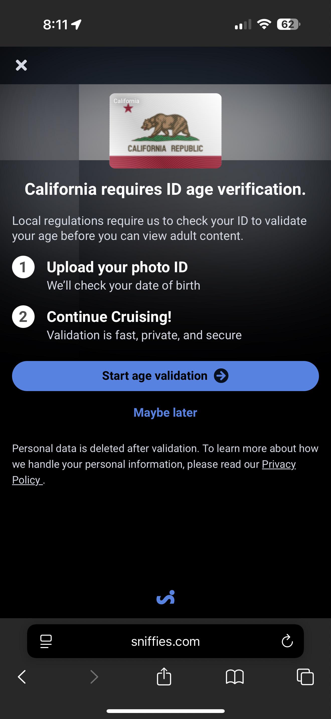 Sniffies asking for id